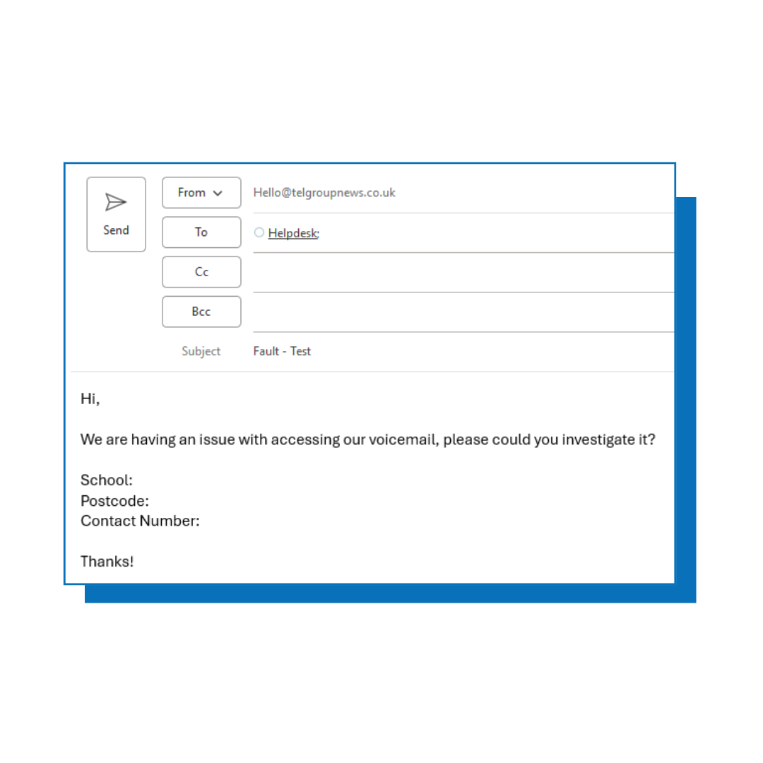 Email: send fault details to helpdesk@telgroup.co.uk, this will create a ticket under your account, if you don’t have an account yet, we’ll invite you to set one up automatically so you can track progress.